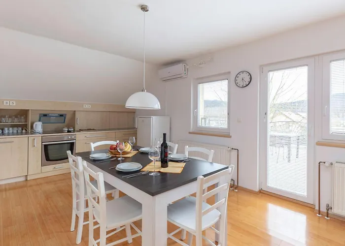 Среди прочих удобств - электрочайник, холодильник и посудомоечная машина, предназначенные для вашего комфорта. В апартаментах гости могут воспользоваться кофеваркой. Эти апартаменты площадью 70 м^2 расположены всего в 35 км от аэропорта Любляна. В этих апартаментах можно воспользоваться аквапарком, солнечной террасой и местом для пикника. Здесь есть возможность попробовать бадминтон, боулинг и катание на лыжах.